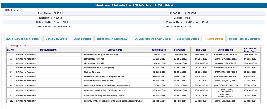 Post-Sea Training Courses